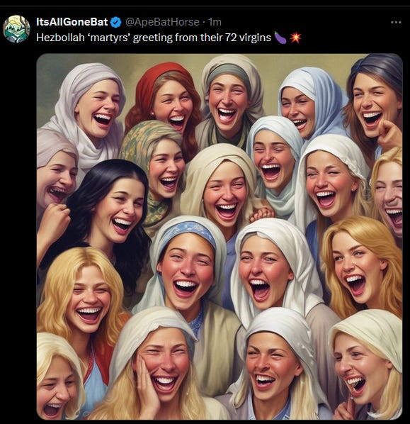 Collation of memes making fun of our amazing attack against Hezbollah terrorists. Zero collatoral damage.